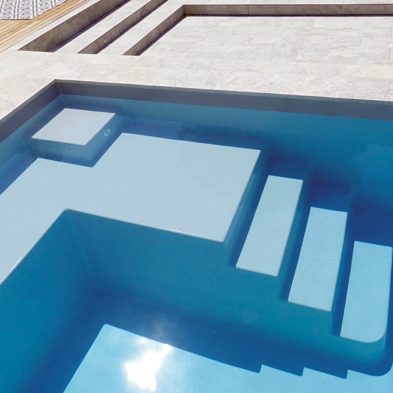 La piscine coque Mont Louis a l’avantage de disposer d’une large banquette de 0,70 m sur toute la largeur du bassin. Cette option est parfaite pour s’asseoir et profiter d’un moment de détente au soleil, ou pour effectuer des exercices d’aquagym en toute sérénité.